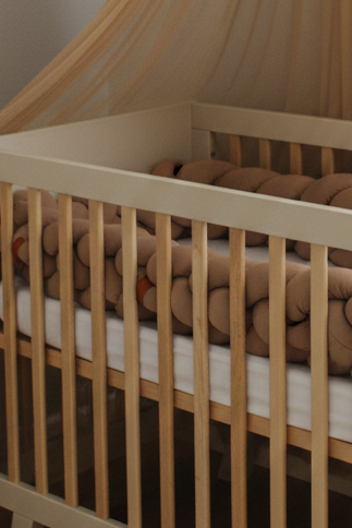 Create a nurturing nursery space with our Tulle + Bumper set in warm mocha tones.